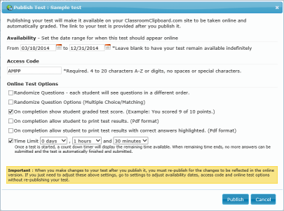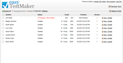 You decide if your students can download their results, see their grade and grading marks as soon as they finish... or print them out yourself. You can even make changes to your test and re-publish the updates.